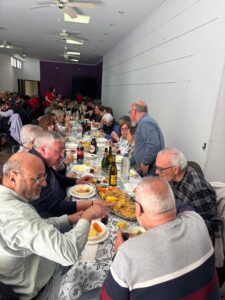 Y tras la emoción compartida, llegó el momento de seguir haciendo Hermandad alrededor de la mesa. Una comida que volvió a demostrar que lo nuestro va mucho más allá de lo que se ve en la calle. Un ambiente inmejorable, repleto de convivencia, risas y unión, donde un gran número de cofrades disfrutaron de un magnífico puchero, preparado con mimo y dedicación por algunos de nuestros hermanos y hermanas.